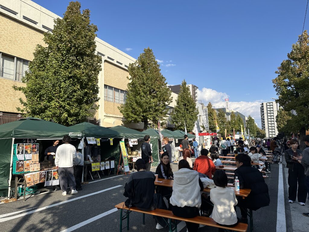 協同組合岡山県卸センターでは、去る11月2日(日)、問屋町において「問屋町Street fes 2025 超!宴」を開催しました。このイベントは、問屋町テラス北側道路を歩行者天国とし、日本文化の「宴」をテーマに、「人」と「街」を「食・酒・音楽」でつなぐことをコンセプトに実施しています。