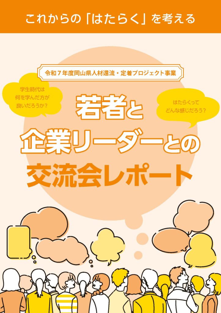 岡山県中央会では、岡山県の委託を受け、「はたらく」をテーマに、就職活動を控える学生と企業の経営者、若手社員が本音で語り合う交流会を開催しています。